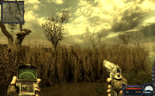 "Чисте небо" — це справжній "Сталкер" із мінімальною кількістю мутантів. Вони немов прикраса тут, найчастіше з'являючись у хореографованих сюжетних сценах. Вночі справжнім кошмаром стають аномалії, у які, варто опинитися, ти сліпучий, немов крат, і отримаєш oneshot, перш ніж встигнеш прибігти до точки збереження. Але не можна забути важливий аспект — гра "Сталкер: Чисте небо" ніби переносить нас у постійний стан вживання тютюну. Радіація тебе похитне до такого ступеня, що це може викликати навіть епілептичний приступ. Тоді як горілка — не такий уже ефективний «лекахар», її доведеться випити цілу пляшку, щоб хоч трохи відчути полегшення. Однак ця гра славиться своїм прагненням до надлишку — і це стосується всього. Усього, без винятку.