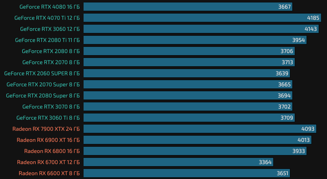 Споживання оперативної пам'яті при роздільній здатності 3840х2160 (мегабайт).
