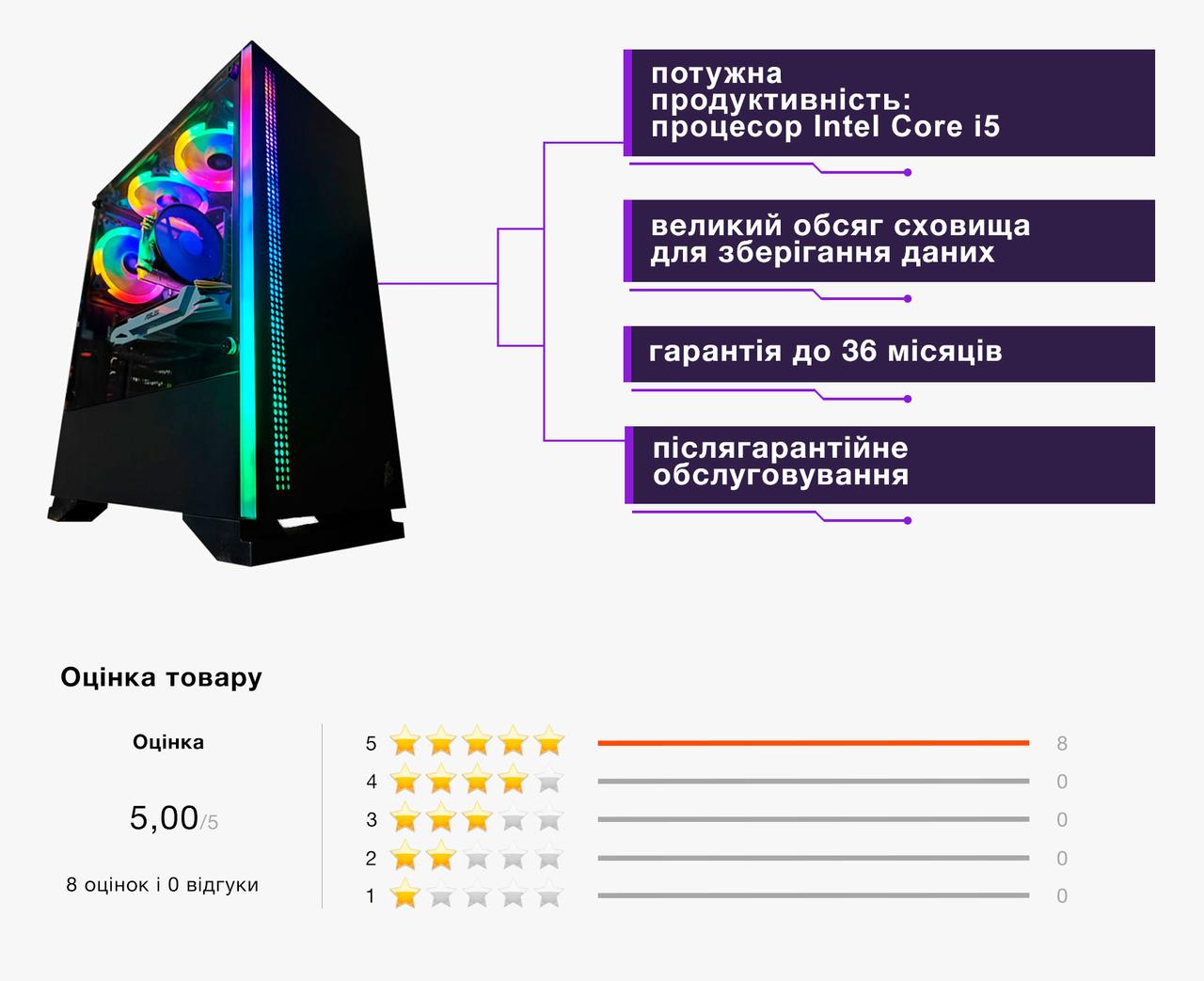 Ігровий комп'ютер Intel Core i5 8500 4.1GHZ, GTX1660 SUPER 6GB, 16GB, SSD 240GB, HDD 1TB