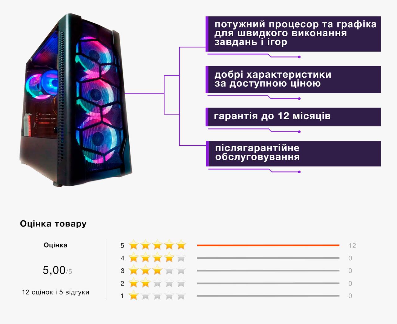 Цей ігровий ПК стане чудовим вибором для геймерів і професіоналів, яким потрібна висока продуктивність і стабільність у роботі.